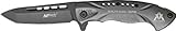 Couteau MTech Linerlock Air Force. Mesure 11,3 pouces lorsque fermé. En acier lisse lame 9 cm 440 peints en noir avec une conception de fente. Poignée de couleur bronze à canon gris anodisé aluminium, armée de l'Air.