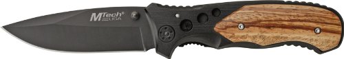 #Couteau MTech Linerlock. Mesure 11,3 pouces lorsque fermé. Acier lame plate de 440 9 cm avec finition noire. Poignée en aluminium avec bois faux médaillon.