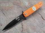 Couteau MTech Linerlock-EMT. Mesure 10 pouces fermé. lame de 7,60 cm en acier finition noire avec longue tige. Poignée Checkered avec orange rompicristallo dans la composition. Pocket clip en acier inoxydable avec finition noire.