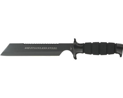Misc Jungle Survival.?Survie Jungle MISC. Taille totale : 31,1 cm. lame de 18,4 cm d'acier noir. Noir poignée avec protection en caoutchouc et boutons en métal noir. Gaine de nylon noir.