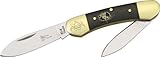 | ✚✚✚ Frost Steel Warrior Lil Canoe Polyvalent couteau en acier guerrier Lil Frost canots. Mesures 8,3 centimètres de fermé. 2 lames en acier 440. Manche en corne de buffle avec laiton finition traversins et bouclier de marqueterie. Gravée sur un traversin, l'image de Buffalo head. Sac de velours noir.