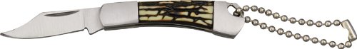#Couteau porte-clés dossier. Mesures de 5,3 pouces fermés. acier de lame de 4,3 cm. Poignée os avec finitions acier. porte-clefs chaîne en acier. Lignes particulièrement en nylon noir.