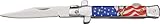 | ✚✚✚ China Stilletto - All American Stiletto couteau-All American. Mesure 10.2 pouces fermeture de verrouillage. acier de lame de 5,2 cm. Manche synthétique avec un drapeau stars and stripes représenté. Chromée. Pas un couteau.