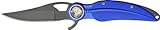 | ✚✚✚ China Eagle Feather Linerlock. Eagle Feather couteau Lock. Mesure 11,3 cm fermé. Noire couteau chirurgical acier 6,3 cm. En aluminium anodisé bleu poignée forme plume d'aigle. Trou de la sangle.