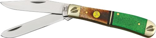 Frost Steel Warrior Trapper.?Polyvalent couteau en acier guerrier Frost trappeur. mesure 10,3 pouces de fermé. 2 lames d'acier 440 acier guerrier logo gravé. OS lisse gérer le champ de maïs vert/brun avec mitres maillechort et bouclier de marqueterie.