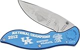Couteau Frost 2012 du Kentucky. Championnats nationaux 2012 NCAA D1. 10,95 pouces mesure de fermeture avec verrou. lame en acier 440 en mat finish de 8,3 pouces. Poignée bleu électrique en aluminium anodisé avec numéro de série. Fonctionnalité de gravure commémorative sur la lame et la poignée. Clip de poche en mat de finition.