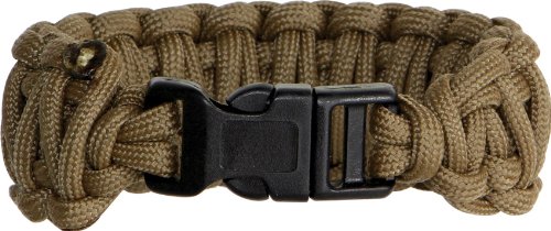 #Bracelet de survie épineux garçons Fat Boy survie. Taille : Moyenne (20 cm de diamètre). Couleur : Coyote Brown. Vous permet d'effectuer plusieurs mètres de corde de nylon qui peut être utilisé en cas d'urgence pour la survie. Un pouce de diamètre de votre poignet/bracelet est équivalent à environ un pied du cordon.